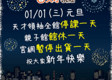 (館休公告)1/1(三)歡慶元旦,全館館休一天!