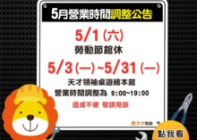 天才領袖桌遊繪本館 營業時間調整公告