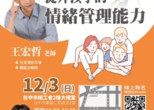 講座快訊 : 父母成長講座,有效親子溝通術 (2018/10/20台中)