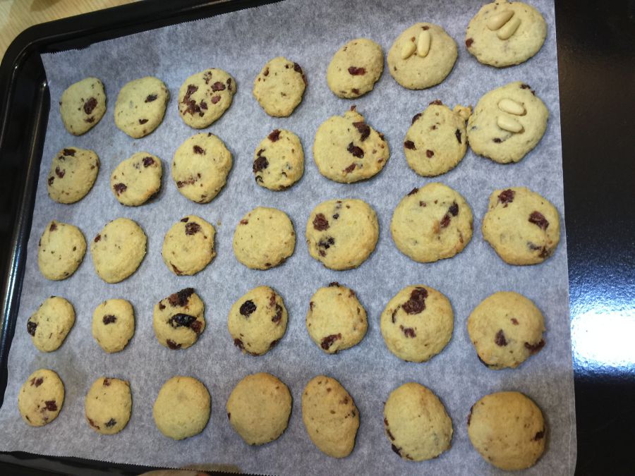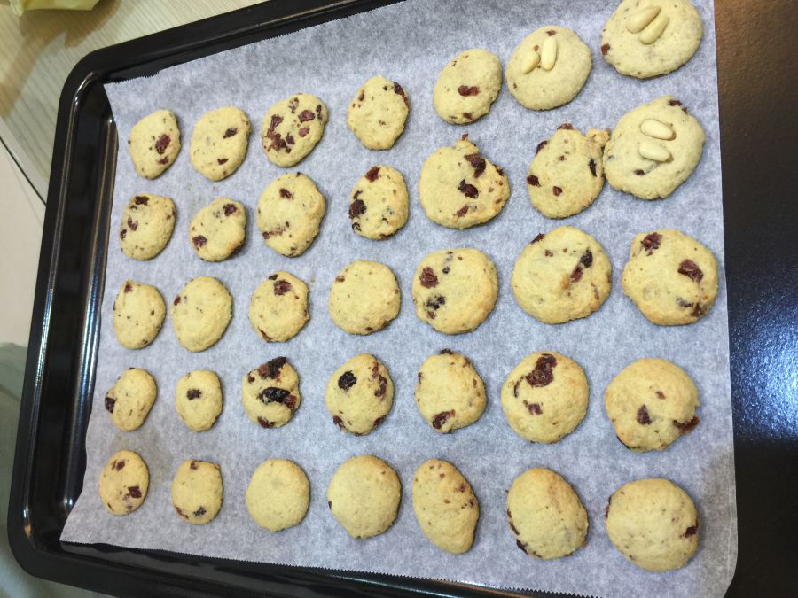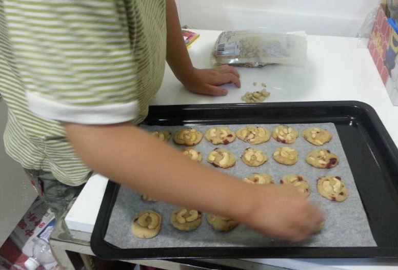 4. 搓成小圓球壓扁,鋪平於烤盤上,並開始依喜好加入堅果。(覺得太濕不好搓圓,也可以先冰一下再取出使用)