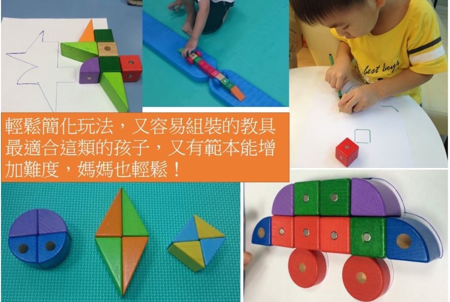 * 給孩子玩結構性玩具時,記得只先提供其中一部份。例如玩邏輯智慧梯時,只先給孩子兩三個積木而不是一整組。難度是逐漸增加才能讓這類的孩子想挑戰,增加耐挫力,一股腦地給孩子,孩子可能看到「多」就退縮了唷!拼圖也是,從最後三片請孩子完成,再到最後五片、十片……。