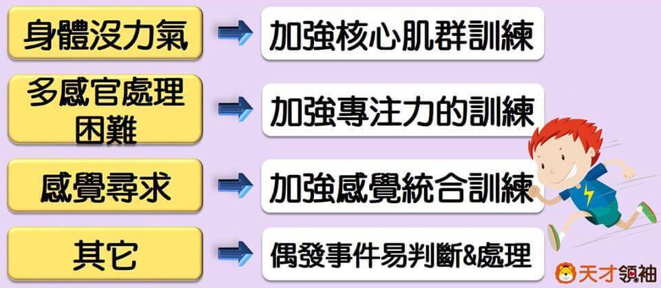 我們要能維持姿勢一段時間,需要良好的肌耐力,當孩子的身體肌耐力不好時,就會看到孩子容易駝背,坐的時候一直在變換姿勢,進而影響注意力,因此這類的孩子,要坐得住,就要加強核心肌群訓練。