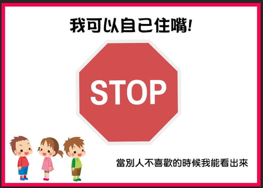 孩子不會看場合,就容易隨心所欲説話,進了團體後,常常是大問題,所以要教他看場合決定能不能説話。
