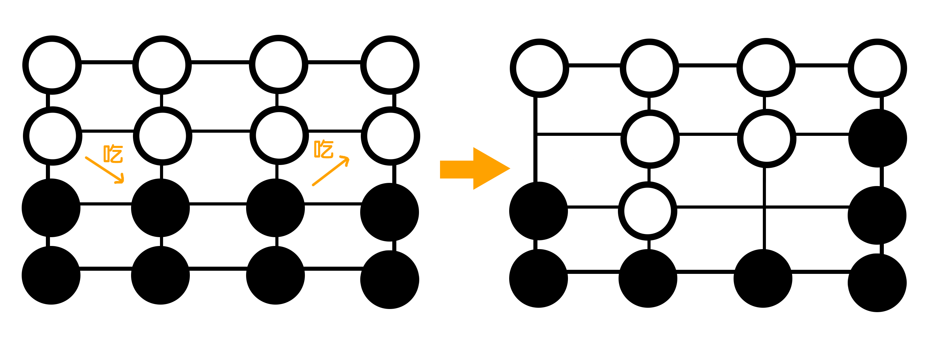 4.先將對方棋子吃完的一方獲勝。