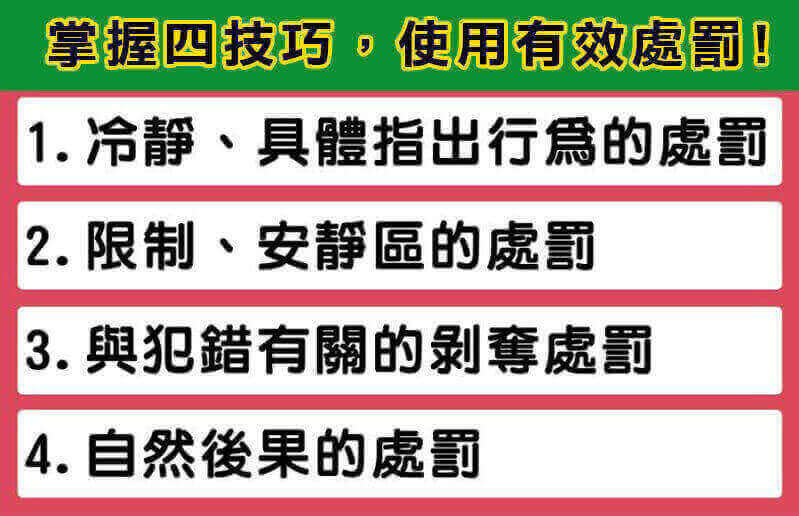在公共場所裡面或者是在大眾場所裡面,去進行處罰,或者是進行言語上面的怒罵,反而會傷到孩子的自尊心,尤其是五歲以上的孩子,孩子犯錯當下大人都急著教,沒有一個爸爸媽媽想要對孩子進行處罰,可是我們會不自覺去做不對的處罰。