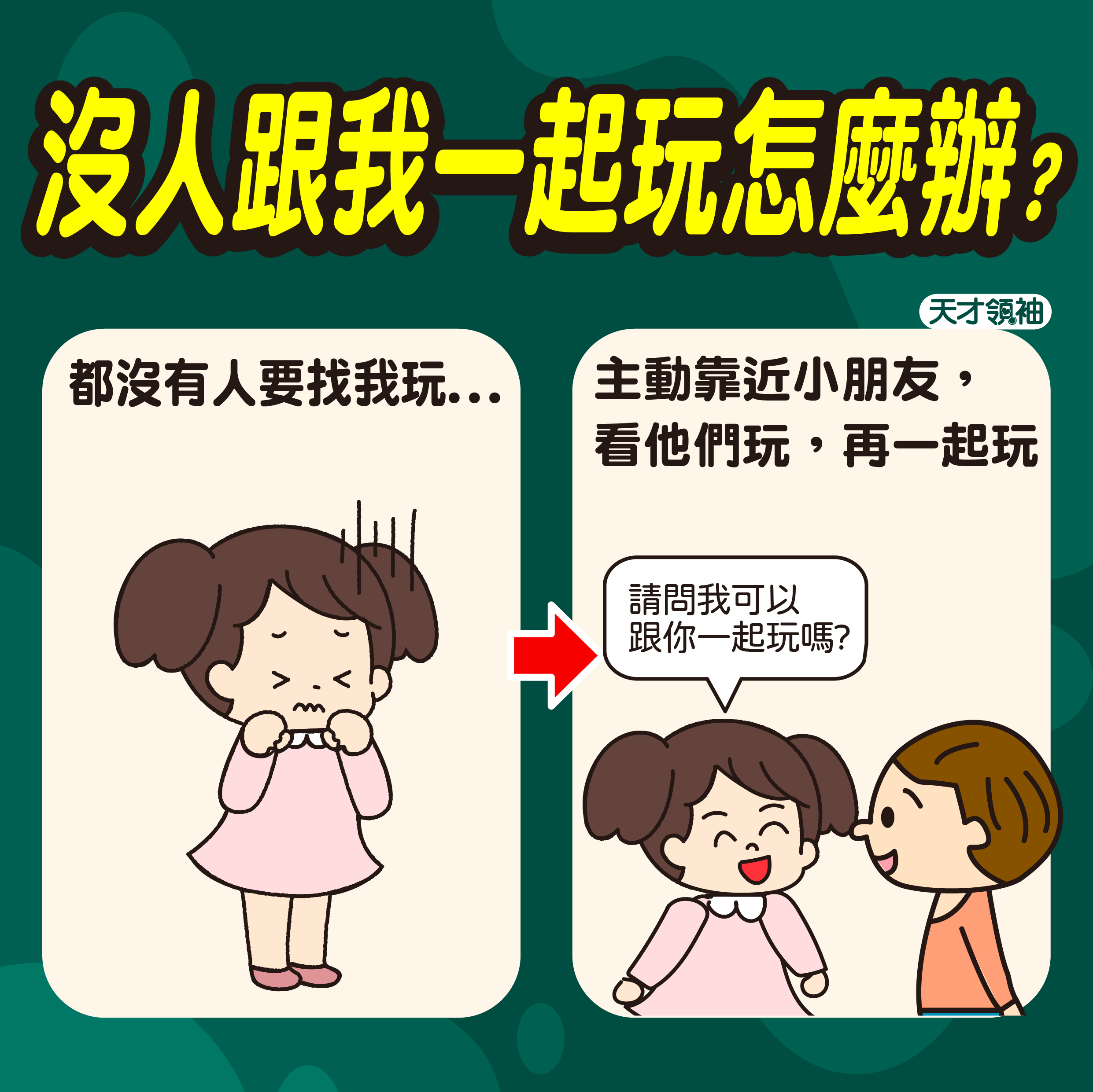 - ◆看看有沒有小朋友也沒玩伴,可以找他一起玩。