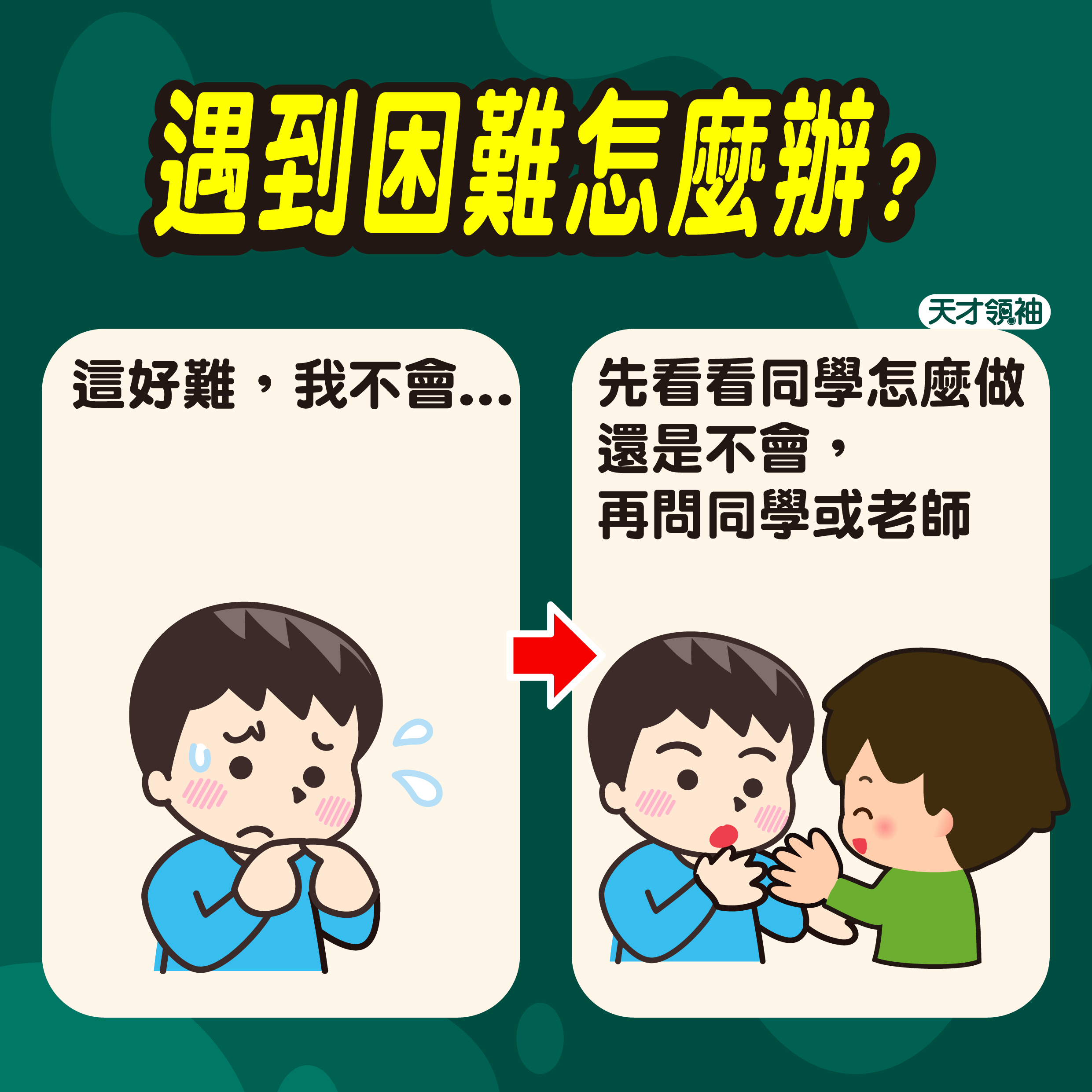 - ◆哭哭或呆在那裡都解決不了問題,要主動問同學或請老師幫忙。