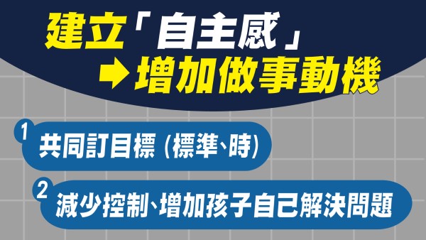 3、建立「自主感」→共同訂目標、減少控制、增加孩子解決問題力
