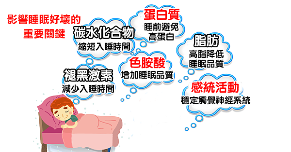 因此睡前四小時吃進碳水化合物有助於睡眠,而白天攝取足夠蛋白質,能維持身體機能,許多荷爾蒙分泌也需要蛋白質,因此有助睡眠品質提升。