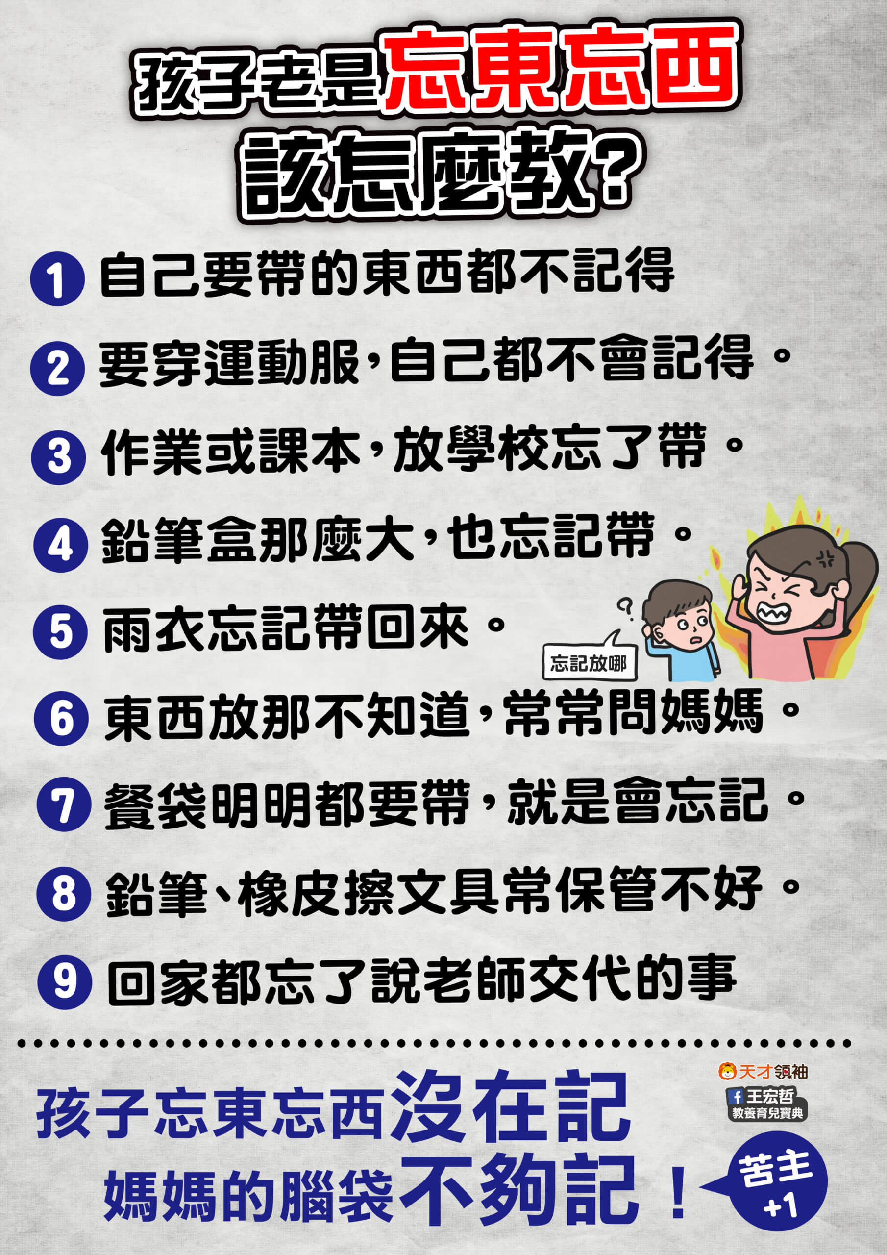 其實,孩子不要東忘西忘,真的要從幼兒時期就開始練,不然,上了小學後,會變的愈來愈嚴重!