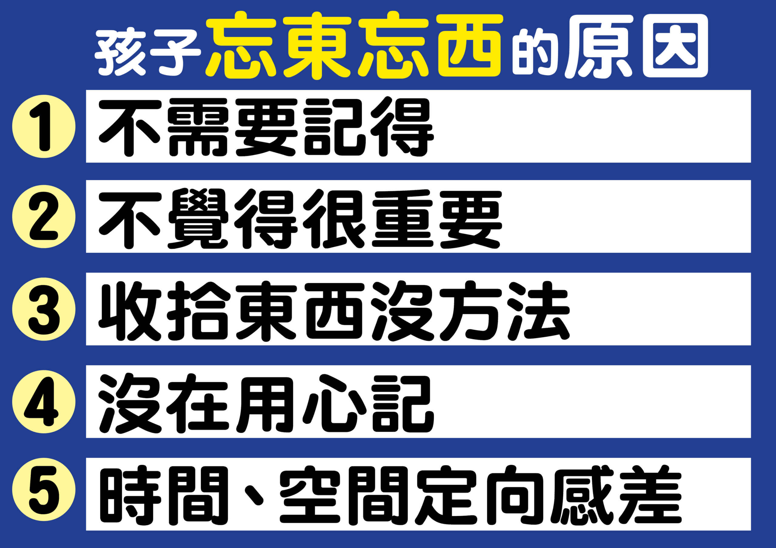 孩子覺得不重要,不知道必要性就沒有動機,導致常忘東忘西。