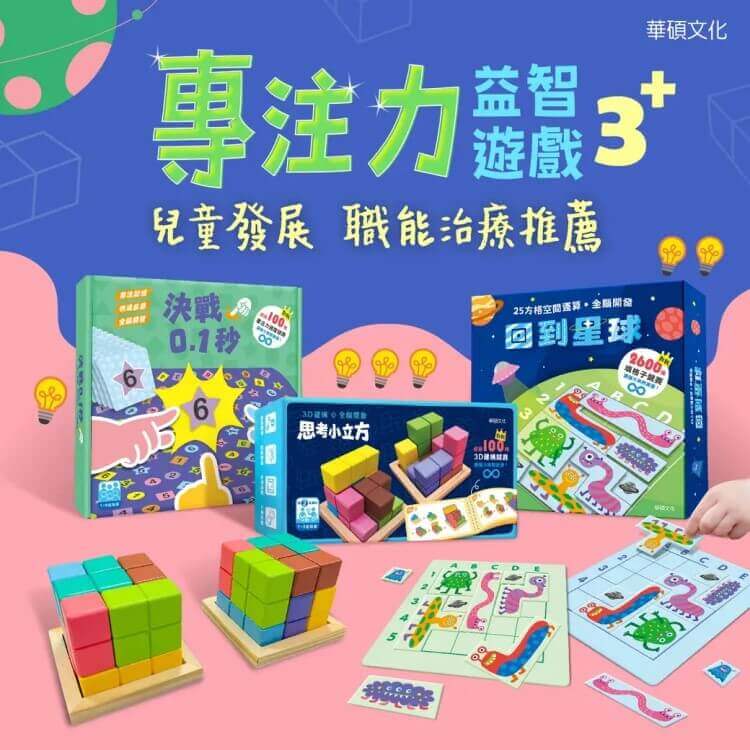 疊積木及拼拼圖的活動一定不能少,這是刺激孩子發展出高度專注非常好的活動。少量的立體書及觸覺書介入,也可以幫助孩子專注力及視覺的發展。另外多跟孩子玩益智型互動桌遊,取代手機平板遊戲,順便訓練孩子專注力和學習力。