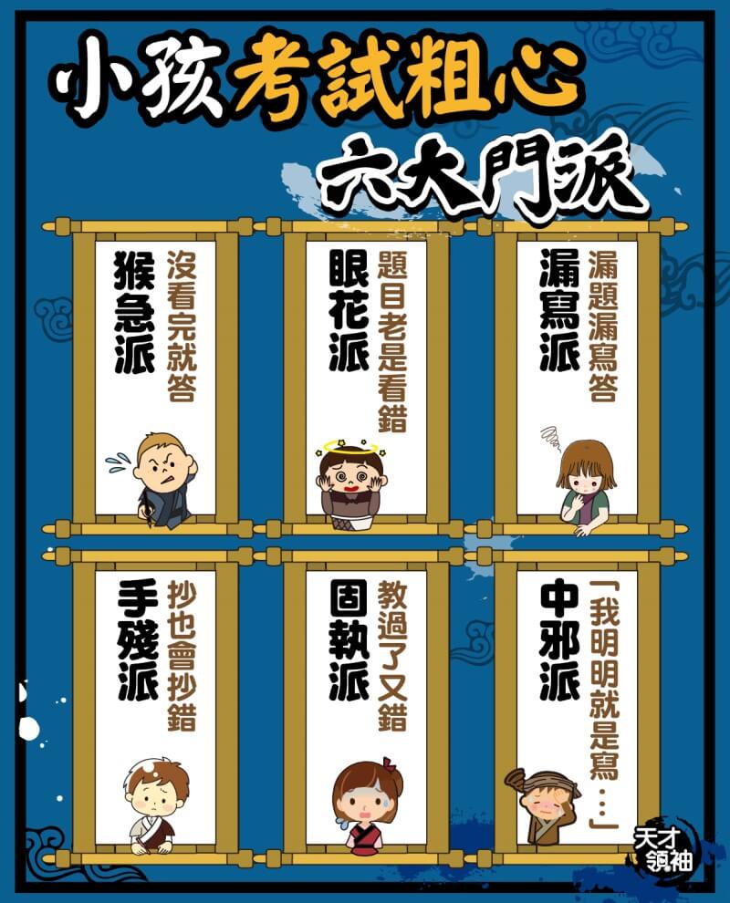 在解決「粗心」問題前,必須先了解孩子粗心的類型,小孩考試粗心可分為六大派: