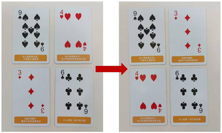 ►遊戲訓練:可以利用撲克牌或家中任何物品,請孩子注意看10秒,接著請孩子閉眼睛,改變後(換順序、換物品、新增或減少都可以),再請孩子看看有哪裡不一樣。