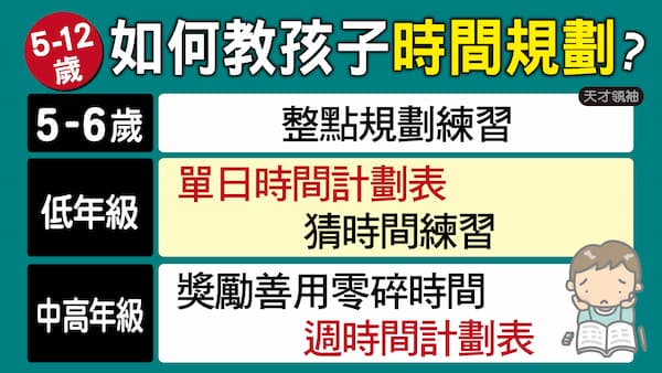 透過以上分齡教導時間規劃的方法,大人可以幫助孩子逐步培養良好的時間管理的好習慣,對未來是非常有幫助的!