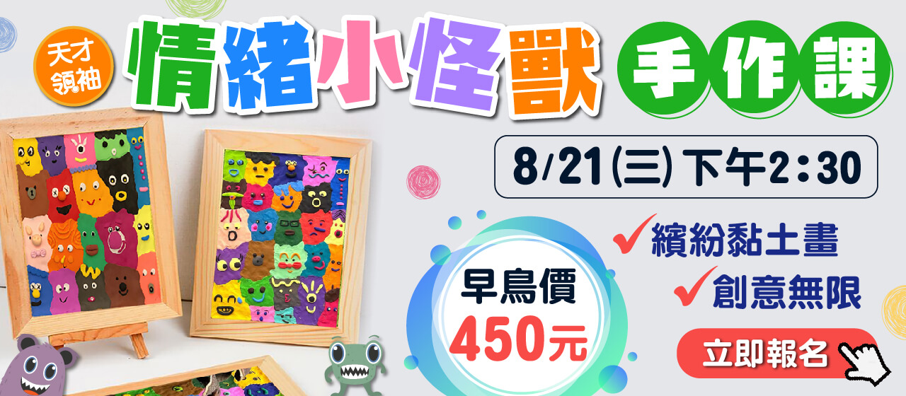 天才領袖8月DIY活動!恐龍立體畫◆小怪獸黏土畫◆滿額贈好禮