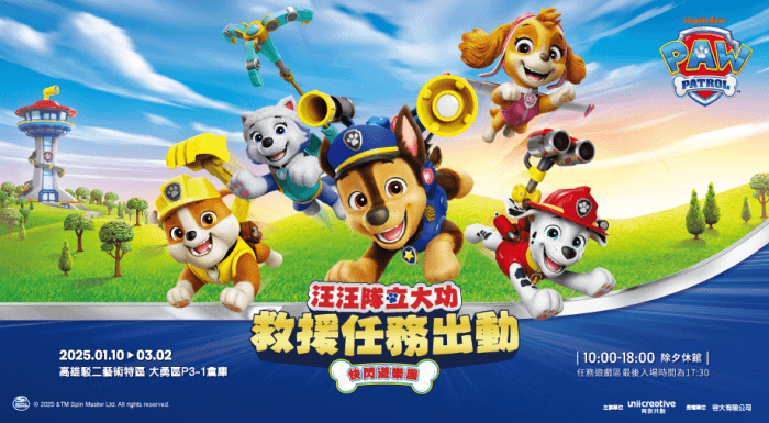 此次快閃遊樂園的「任務遊戲手冊」要讓小朋友跟著阿奇、毛毛、小礫、珠珠還有天天,一起完成救援任務!小朋友可以駕駛阿奇、毛毛專屬電動車,完成巡邏任務,跟著毛毛完成滅火任務,和小礫一起進行挖沙訓練,和珠珠一起挑戰雪地任務,還有和最可愛的天天飛向天空完成套環練習!完成關卡的小朋友們都可以獲得精美小禮,等你一起來收集。