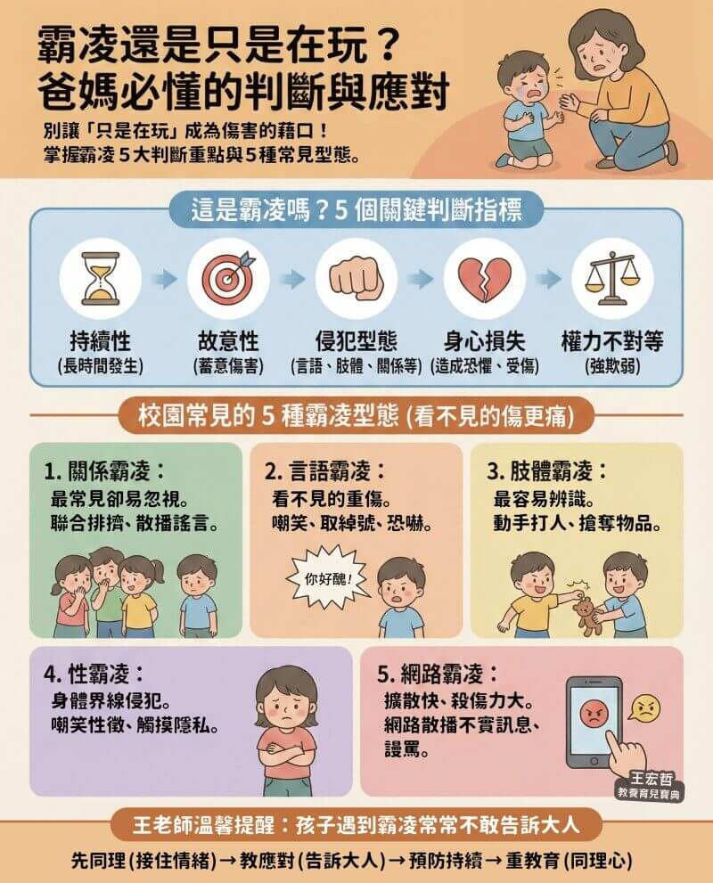 霸凌有幾個重要的判斷,包括: