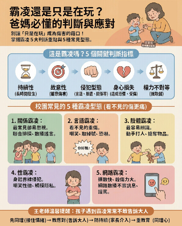 過去我不太喜歡太快定義孩子是否霸凌行為,是因為在「持續性」上都要再觀察,但這幾年來發現孩子們在改變,他們的心智在改變、他們的情緒在改變、他們接收的資訊在改變,所以霸凌也在變嚴重中,大家一定要慎重處理!
