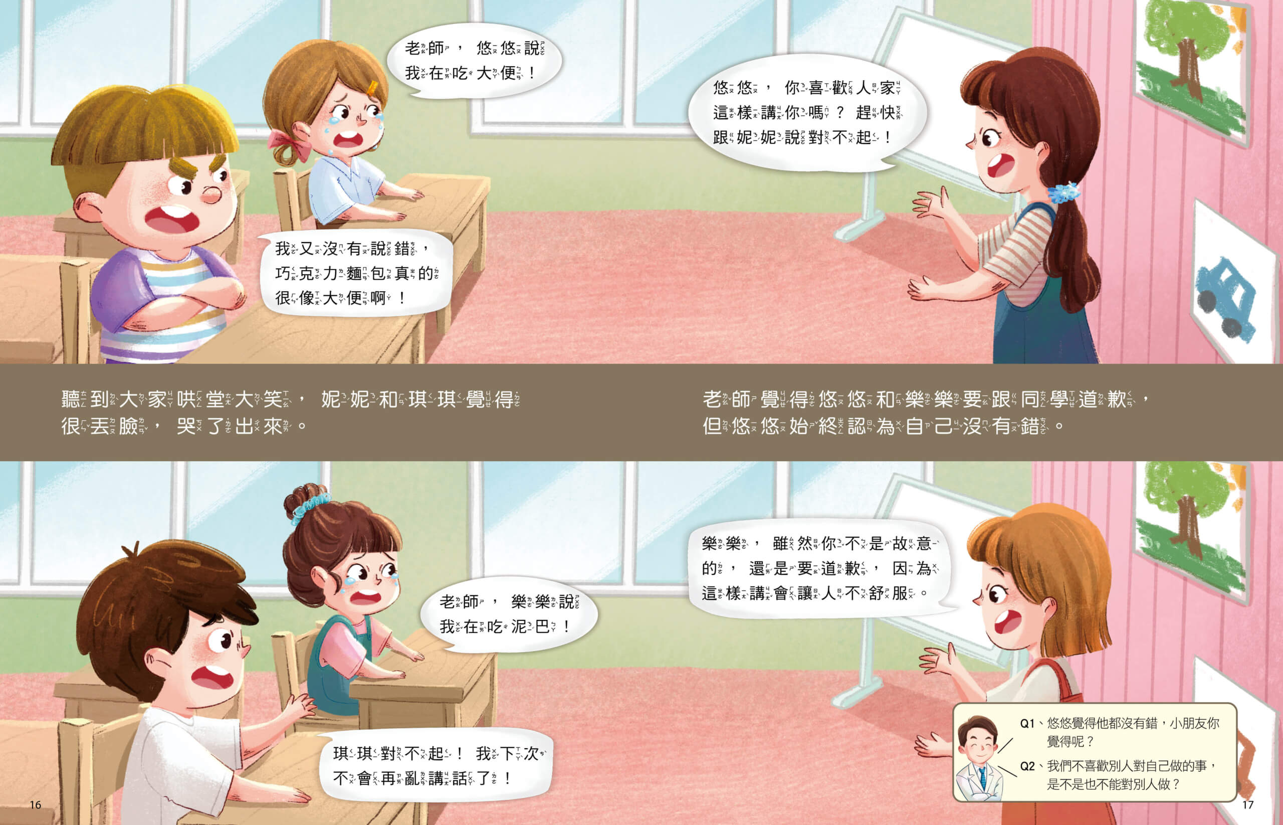 《為什麼要說對不起》中的悠悠,像極了每個面對責備時的孩子——搞不懂自己為什麼要道歉,尤其當他覺得「我又沒錯!」此時,比起強迫孩子低頭認錯,更重要的是陪伴他理解:道歉不是懲罰,而是一種修補關係、學習換位思考的方式。當孩子知道「對不起」背後承載的是同理與勇氣,而不是失敗與丟臉,他才會願意打開心、看見他人,也修補自己。