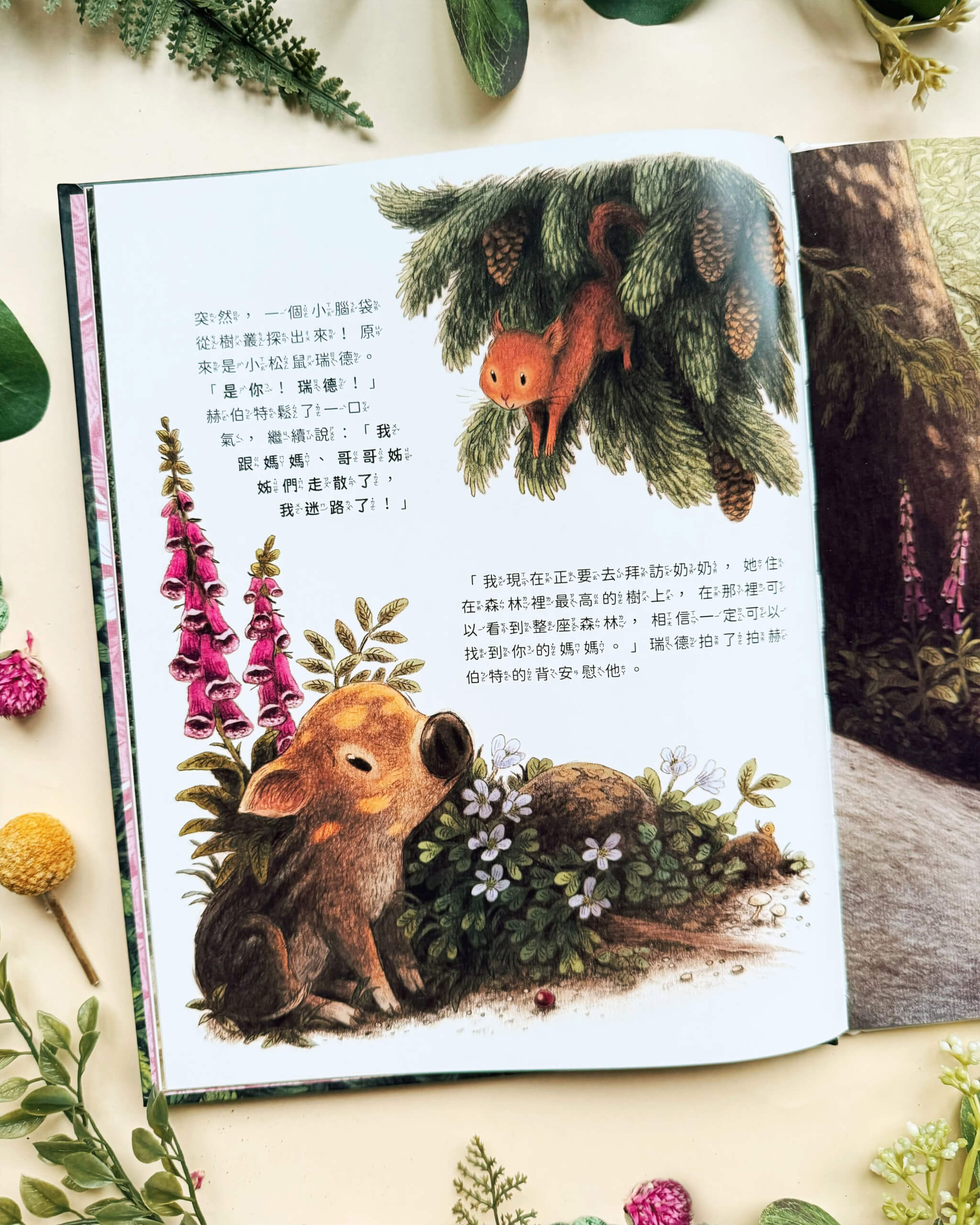 小野豬在旅程中結識了好多動物:在樹梢上蹦蹦跳跳的小松鼠,在灌木叢裡呼呼大睡的小白鹿……透過一起冒險的過程,讓孩子了解如何與夥伴互助合作,達成目標。