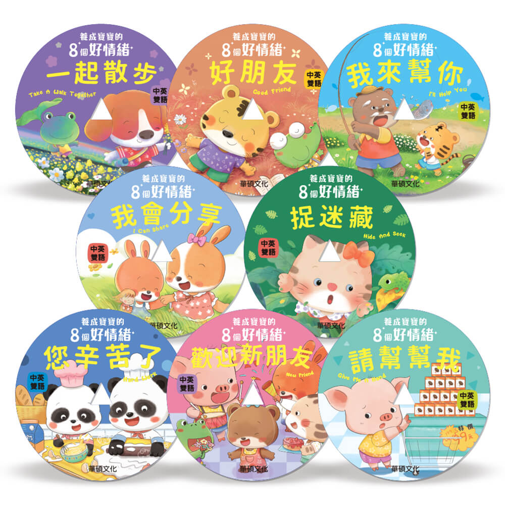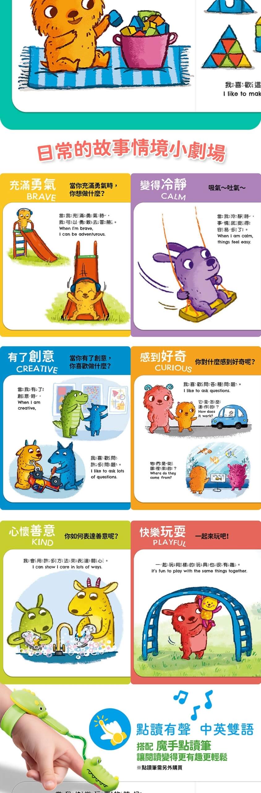 《小怪獸行為引導繪本》、《養成寶寶的8個好情緒》、《養成寶寶的8個好品格》更提供了中英雙語音軌!