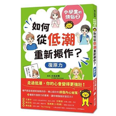 「復原力」是指一個人遇到困境或挫折時,內心就算受傷了,仍可以自我修復的力量。每個人的復原力素質都不同,而這種差異和自身個性、生長環境,以及人際關係等因素有關。不過,其實復原力是可以透過後天補強的。《小學生的煩惱2:如何從低潮重新振作?》就是一本專為「碰到挫折難免會一蹶不振的人」所精心設計的修復內心祕笈,以可愛的吉祥物獅子「Heart」引導式閱讀五個章節:
