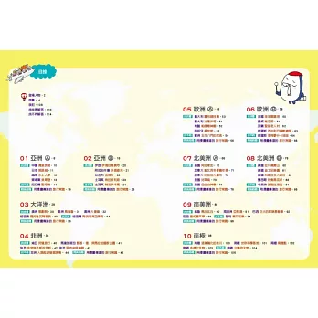 問答以漫畫形式呈現,這讓孩子很感興趣,有不會回答的題目,可以透過複習前面的各國介紹來找出答案,也有前頁沒有提過的擴充問答,可以讓孩子學習到許多世界地理相關的名詞。」──yes24.com/書評