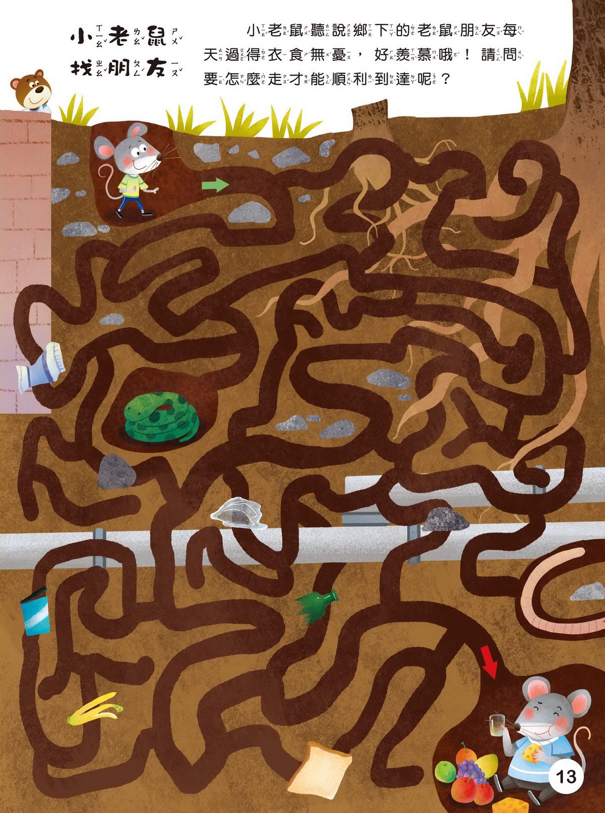 書中透過故事來進入遊戲情境,每個迷宮都是一個新世界、新空間,孩子們可以上天入地、上山下海,走出千奇百變的路線,解決千奇百怪的難題,最終抵達終點,感受迷宮帶來的多重魅力。